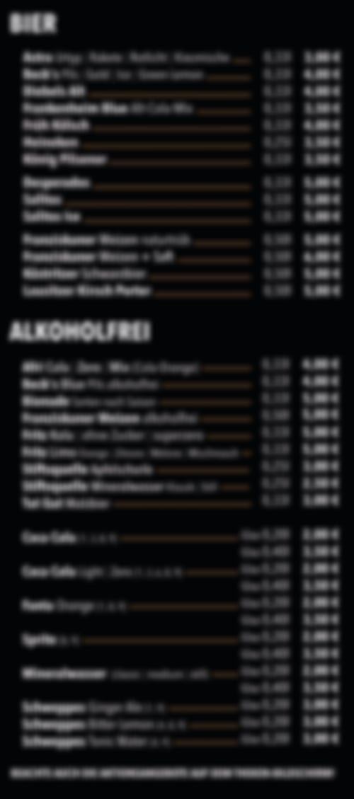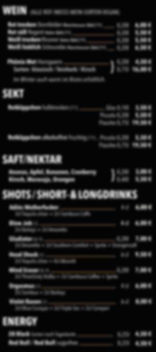 Zu unserer festen Karte gibt es aber immer Aktionen mit Getränken zu Sonderpreisen, unsere Phönix-Preis-Helden, denn wenn wir einen Schnapper machen, geben wir das natürlich gerne an euch weiter.